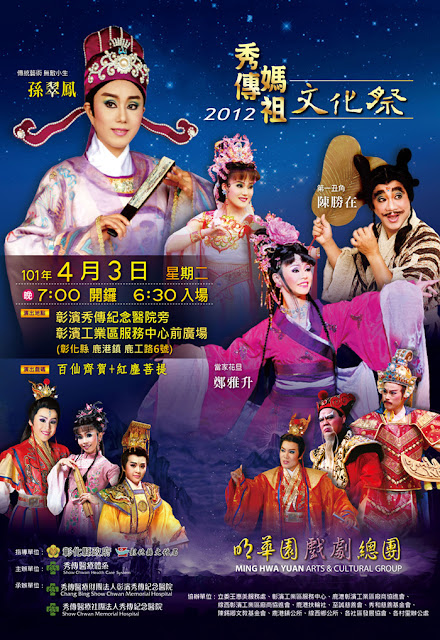 慶祝101年彰濱天上聖母誕辰,秀傳醫院黃總裁特邀請明華園總團孫翠鳳團長領軍蒞臨公演,歡迎大家邀請親朋好友共同前往觀賞。