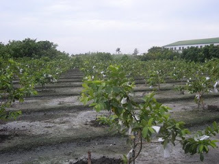 到朋友的芭樂園裏採芭樂(免$的哦), 果然得過獎的芭樂顆顆脆甜,(中部7鄉鎮芭樂的比賽得第二名),自助式的採果樂趣,寶貝們來這每次都玩的滿身大汗.