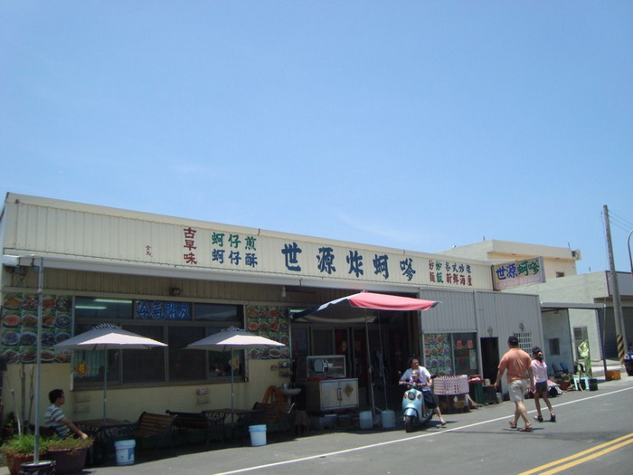 挖了一早上的蛤仔,大家肚子都餓了,主辦單位幫我們準備的餐廳,就在普天宮對面,先換好衣服的人,10人坐一桌可先用餐。 餐廳不大,用餐時間一下子就客滿 一大盤的炒蚵仔麵 古早味蚵仔煎 餐後直接到大城鄉,一間當地頗有名氣的花生工廠參觀,原本要讓我們自製花生糖,但工廠忙於趕工出貨,無法讓我們DIY。 熱情的老闆娘請大家喝青草茶,吃花生和花生糖 領隊還去買來2大盒大城有名的冰品,整台遊覽車的人都還吃不完