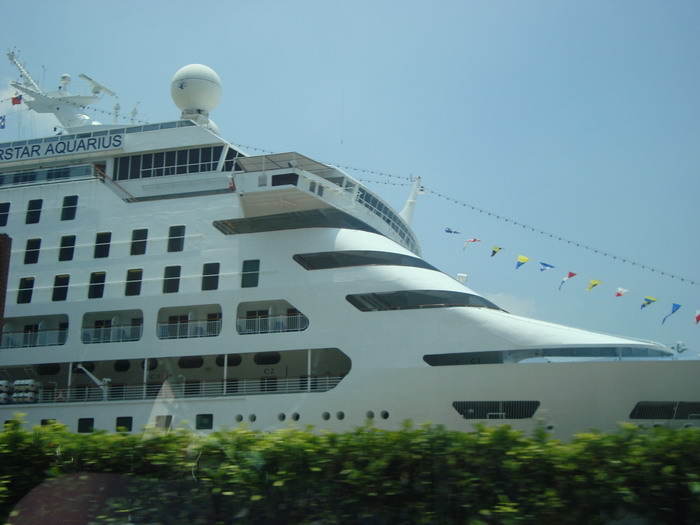 基隆對我們來說算不陌生,來過好幾回,著名的基隆廟口以小吃為主,但此行並不打算前往,天氣熱的關係,胃口不太好,冰淇淋猛吃,水、飲料猛喝,只想找個有冷氣又好停車的地方消暑。 哇!麗星郵輪吔!我們原本要坐在上面的。每次暑假期間到基隆港,幾乎都會看到麗星郵輪停在港口。 基隆火車站 大家肚子都不餓,還是要吃些東西才好