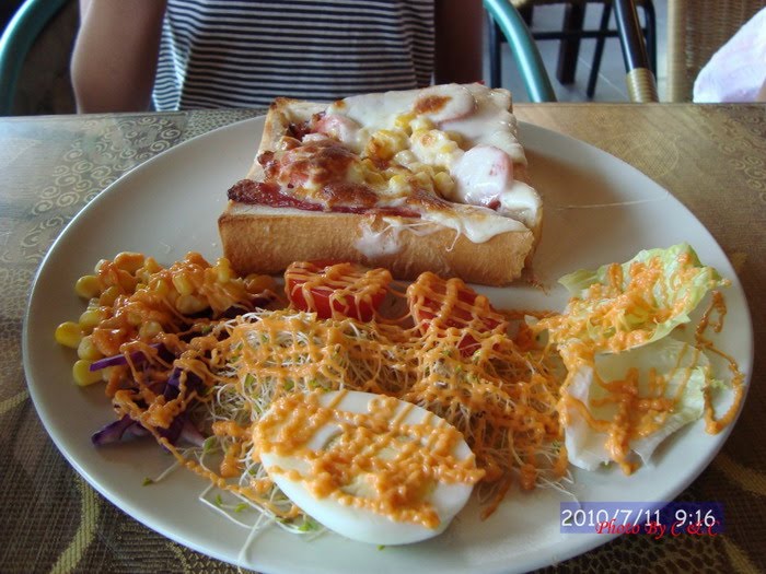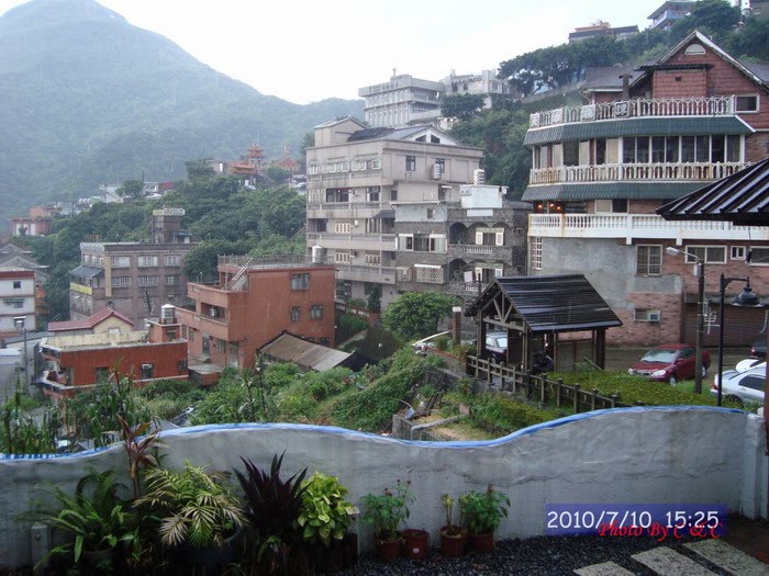 九份週六的房價以四人房來說約$2500起跳, 若要住的有特色較新穎的話,價格更為高價,會選擇愛琴海,是它離老街近,加上有私人車位停車方便,幾次和民宿主人在電話中相談甚歡,就像是相識已久的朋友,見面時還是有聊不完的話,我們都覺得彼此很有緣份. http://aegeansea.i-net.tw/roomShow.do 愛情海的觀景咖啡廳 永恆之心$2700